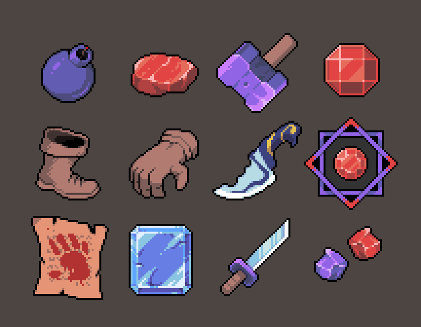 . Рисую пиксельные иконки, элементы окружения, фоны, анимации эффектов и персонажей