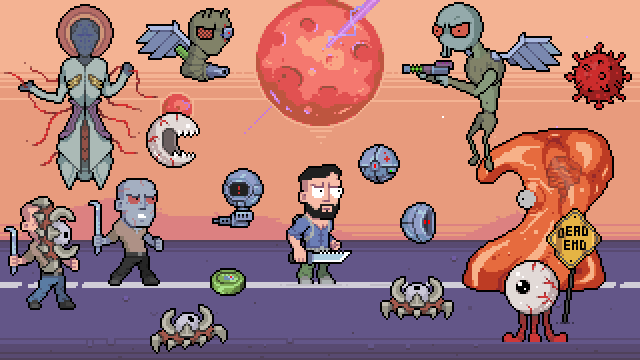 2D Арена в приближенном стиле к пиксельному Рику и Морти: